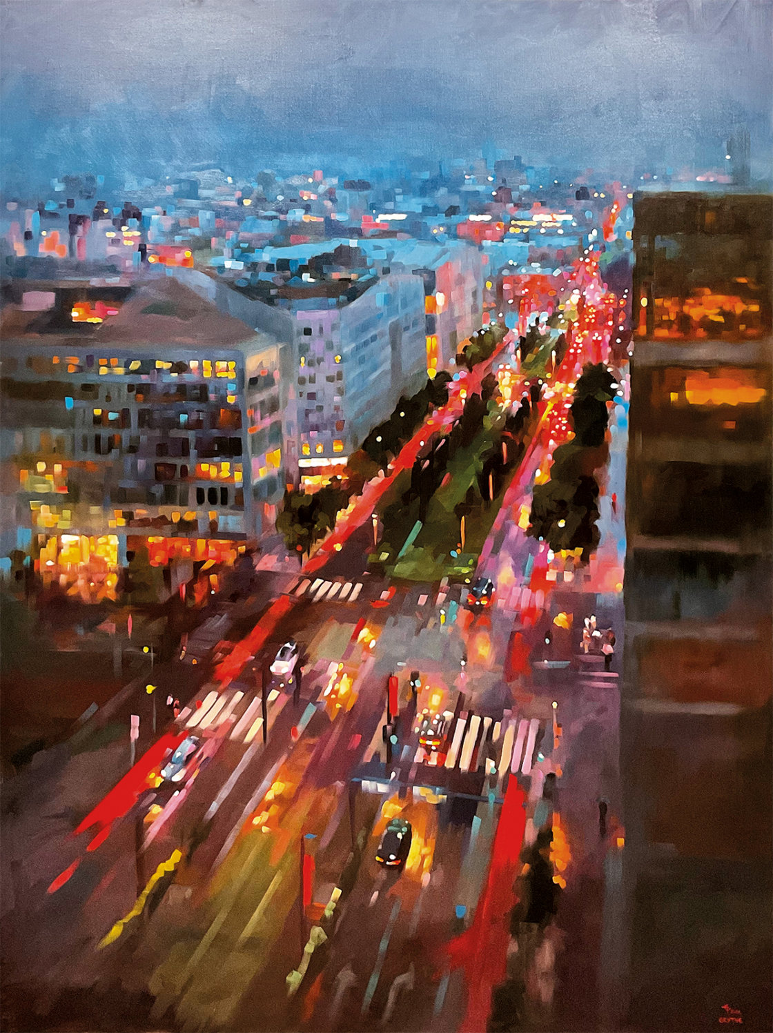 Camilla Grythes (f. 1974) malerkunst er figurativ. Men også ekspressiv. En søken etter farger og lys. Støyen i komposisjonen. Et stillbilde av omgivelsene, der trikken får puls. 3. november åpner hennes nye utstilling på Fineart Oslo.