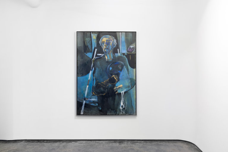 Det første verket som møter den besøkende er et karakteristisk selvportrett av maleren med et godt grep om sin palett, holdt opp som et skjold foran den venstre siden av kroppen. Bleken har malt sin figur foran et staffeli, og understreker sin rolle som både den skapende kunstneren og selve motivet på samme tid, i lerretets plass. Ugla som er plassert over den venstre skulderen, møter vi igjen senere i utstillingen.