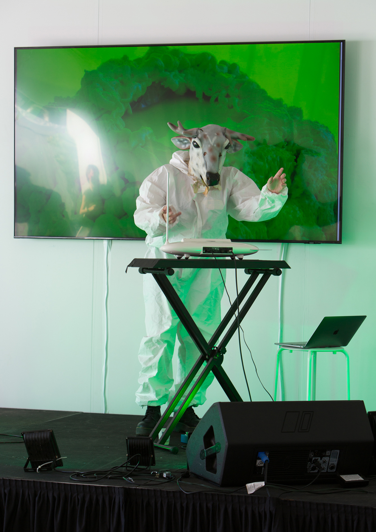 Mens verden er preget av pandemi, fare og bekymring, etablerer kunstneren et tidvis krevende, sirenelignende uttrykk med underliggende vibrasjoner. Samtidig er forestillingen visuelt lokkende, der publikum undrer seg over artistens dyremaske.